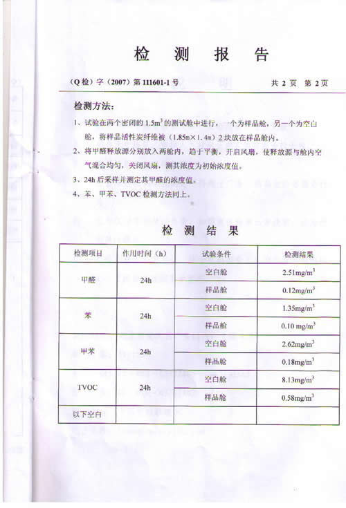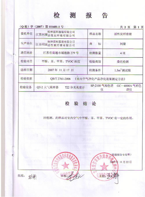 活性碳纖維被檢測報告