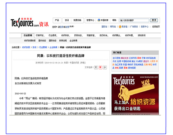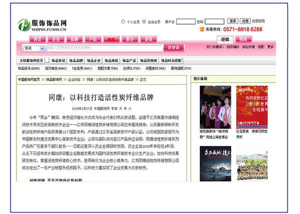 紡織資源資訊網(wǎng)、服飾飾品網(wǎng)——同康:以科技打造活性碳纖維品牌